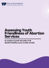 The negligence of abortion service delivery and low quality of the service is a major challenge for accessing abortion in India. Many service providers deny abortion service due to stigma, lack of knowledge and personal morality and beliefs. ‘Accessing Youth Friendliness of Abortion Services’ is an analysis of youth-led audits of 48 abortion facilities across 2 states of India conducted at 2023 by SAFE youth leaders as part of the program. The analysis is prepared based on the data collected by 8 youth leaders using mystery client methodology in Assam and Kerala.